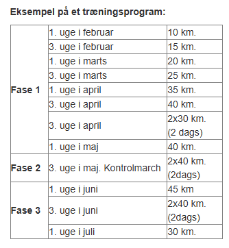 Above we have the Danes’ suggested training program, which is completely sensible for a first-time participant. If you follow the program, you will have about 500 km under your belt, which is more than enough.